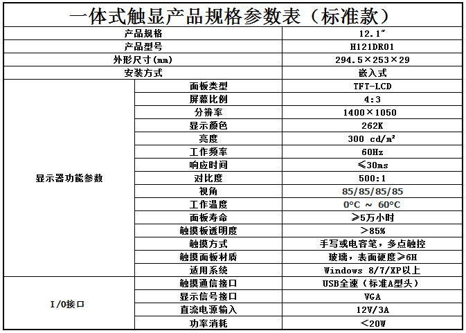 12.1寸电容触摸一体机工业触控触摸屏 电脑工控显示器