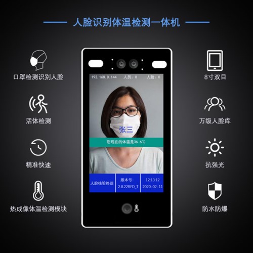 支持戴口罩识别+红外阵列热成像体温检测 |