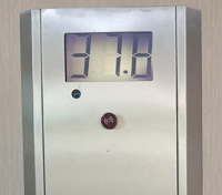 3. 检测:行人进入检测范围,将额头靠近检测区域(5-20CM),当听到设备发出“滴”的一声,检测即已完成,耗时为1-2秒;检测结果会即刻出现在显示屏上。